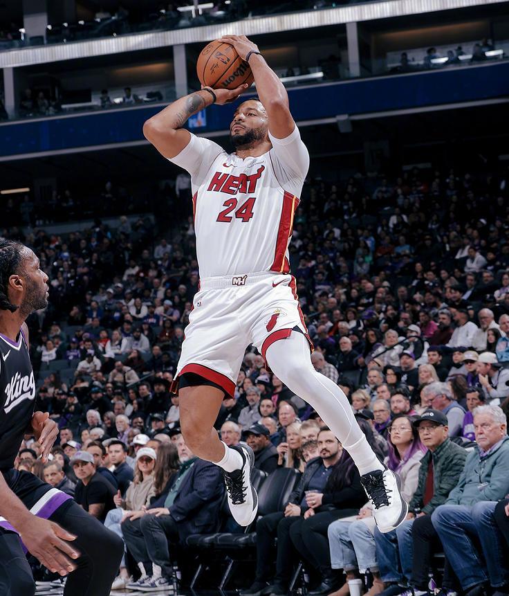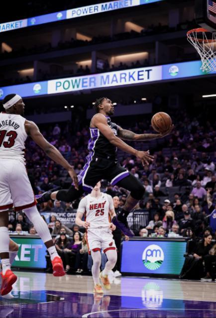 重新回到赛场之后,热火三驾马车的发挥依旧稳定,阿德巴约面对雷诺和小萨博尼斯的轮番消耗,仍然靠着15次出手命中8球的效率,贡献了25分、7个篮板、5次助攻、1次抢断和1个封盖的全面个人数据。